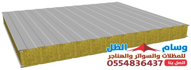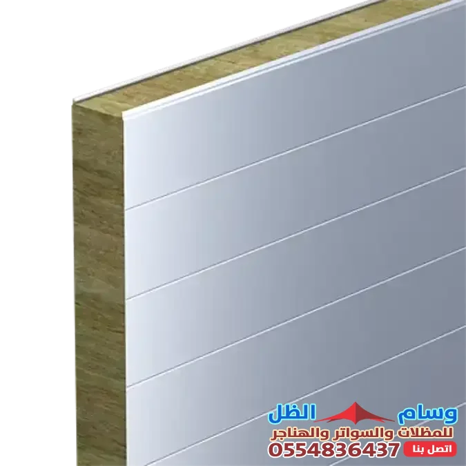 - بنل الساندويش بالصوف الصخري: يتميز بمقاومة عالية للحريق وعزل صوتي ممتاز.