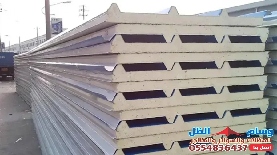 - بنل الساندويش بالبولي يوريثان: يتميز بأعلى معامل عزل حراري وصوتي، وهو الأغلى ثمناً.