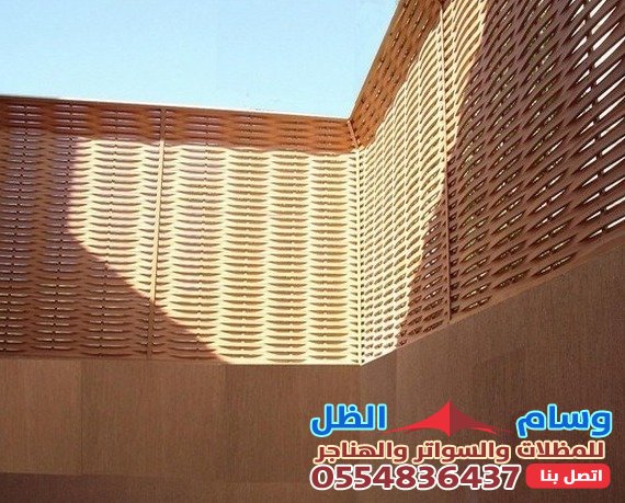 - السواتر الخشبية: تضفي لمسة طبيعية ودافئة على المكان، وتتوفر بتصاميم وأنواع خشبية مختلفة تمنح مظهراً أنيقاً ومتناسقاً مع الحدائق والمساحات الخضراء.