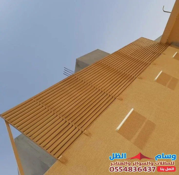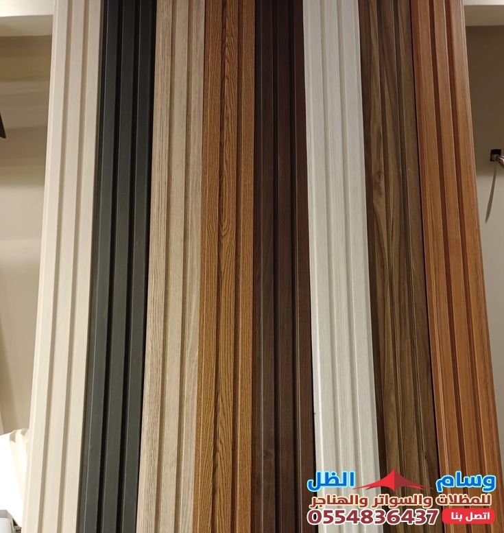 - سواتر خشب تعطي مظهرًا طبيعيًا وجماليًا دافئًا، وتتيح مرونة في التصميم، لكنها عرضة للتلف من الرطوبة والحشرات إذا لم تُعالج بشكل جيد.