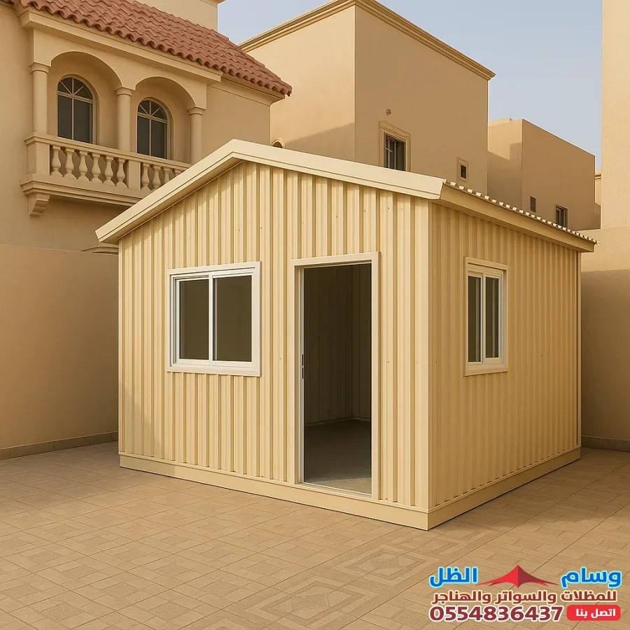 - تركيب الغرف الجاهزة يكون عادة أقل تكلفة حيث يتراوح سعر المتر المربع للغرف الجاهزة بين 200 إلى 300 ريال سعودي، وتشمل التكلفة في العادة المواد، الهيكل المعدني، والتركيب الكامل.