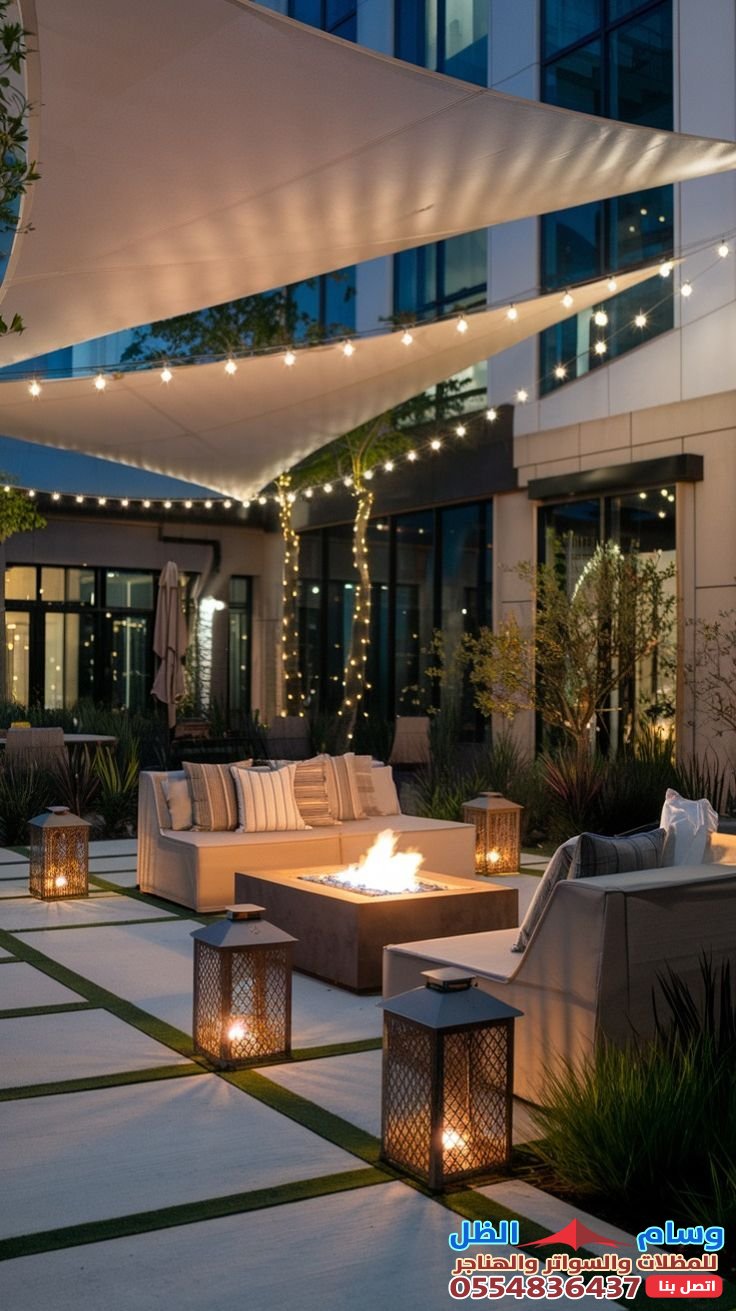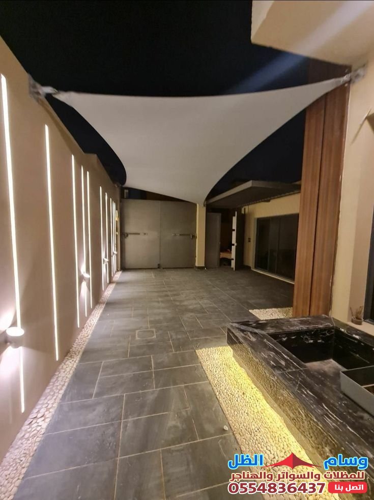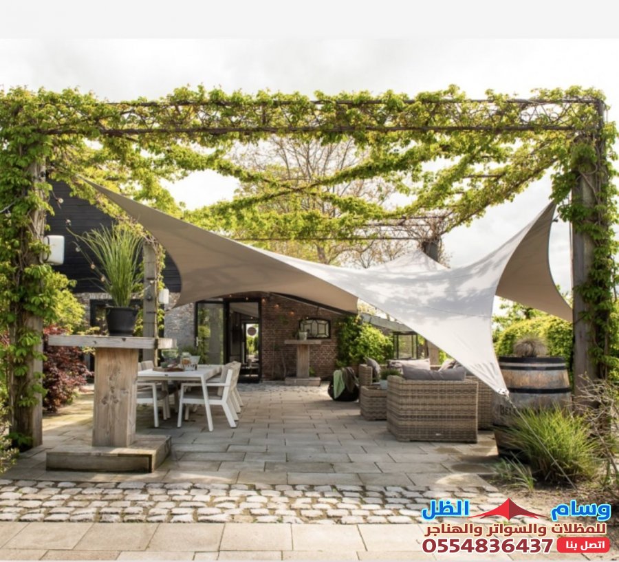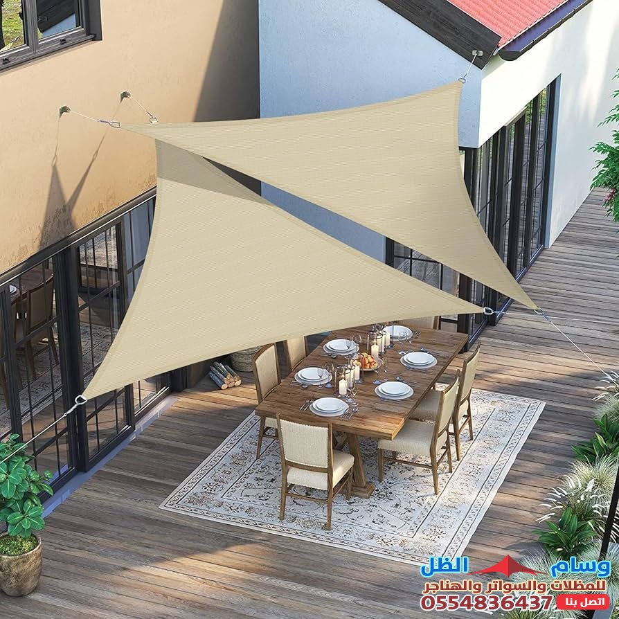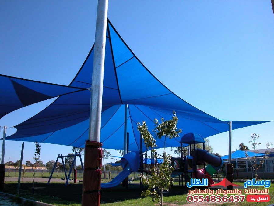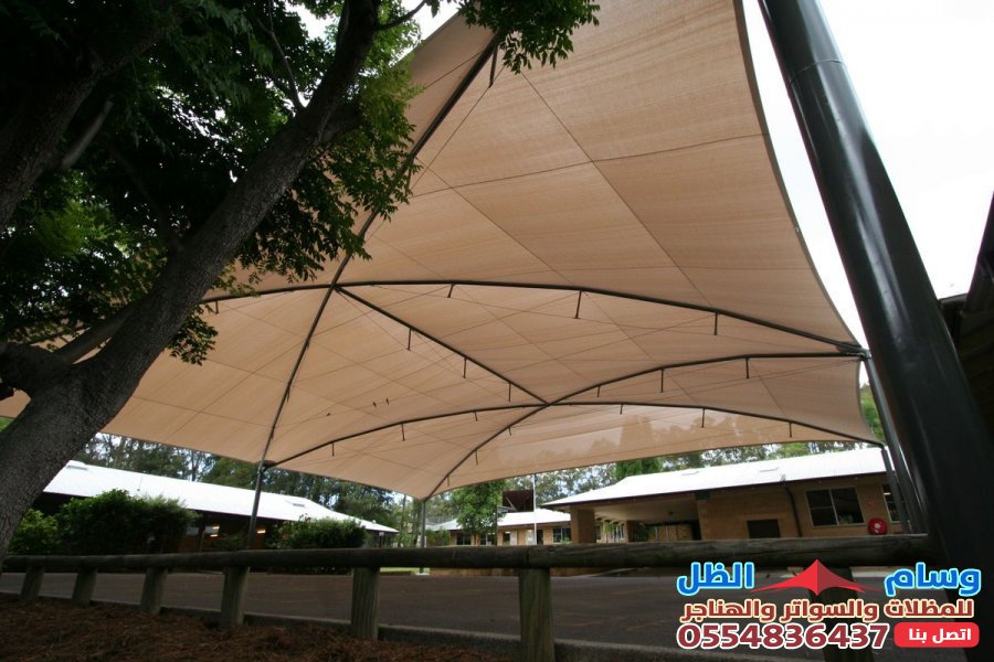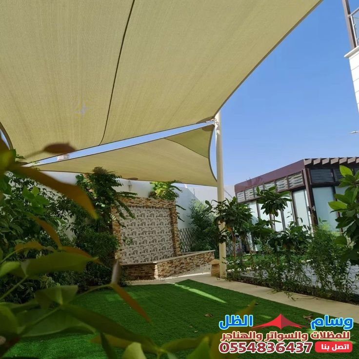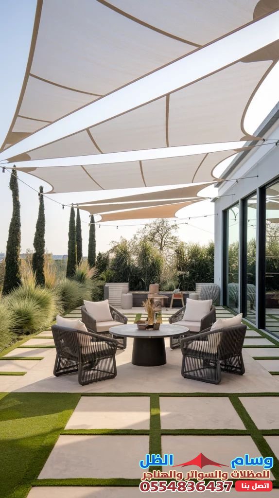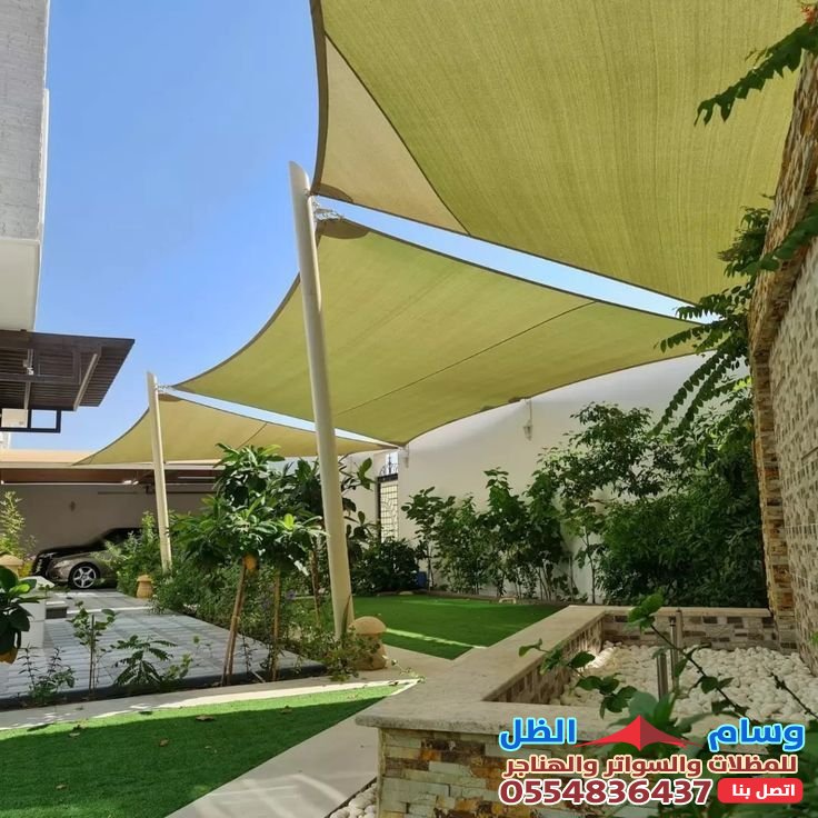 - الحدائق والجلسات السرج (Hypar) أو الأشكال المضلعة لإضافة لمسة جمالية وفنية للمكان، وغالباً ما يُستخدم لتظليل جزء محدد بدلاً من تغطية مساحة شاسعة.