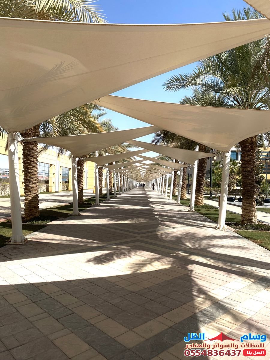 - المراكز التجارية والواجهات: لإضافة لمسة جمالية وعصرية، وتوفير الظل للممرات ومناطق الجلوس الخارجية.