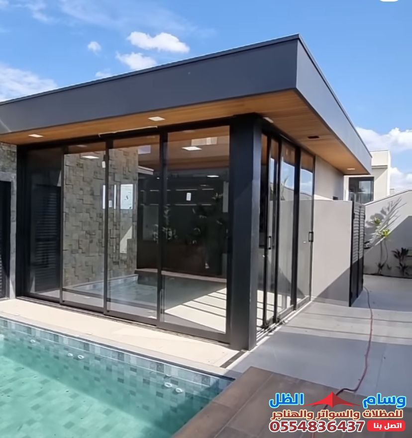 - أنظمة التظليل المدمجة: تركيب ستائر داخلية آلية أو خارجية (Pergolas) أو شاشات تظليل ذكية للتحكم في كمية الشمس المباشرة خاصة في أوقات الذروة. الخصوصية والتحكم بالضوء: ضروري للتحكم في الوهج وتوفير الخصوصية للمستخدمين.