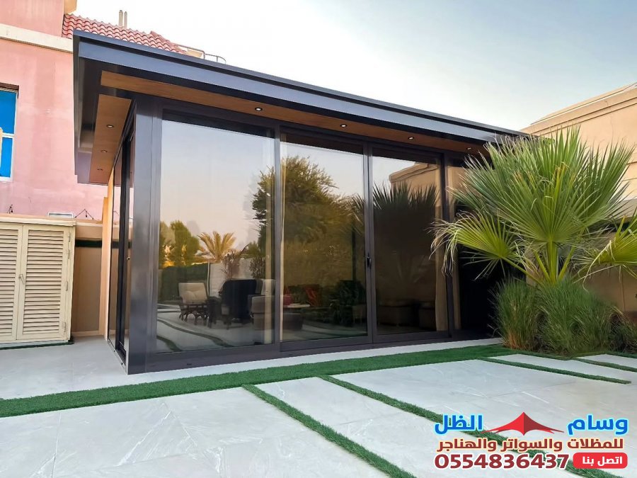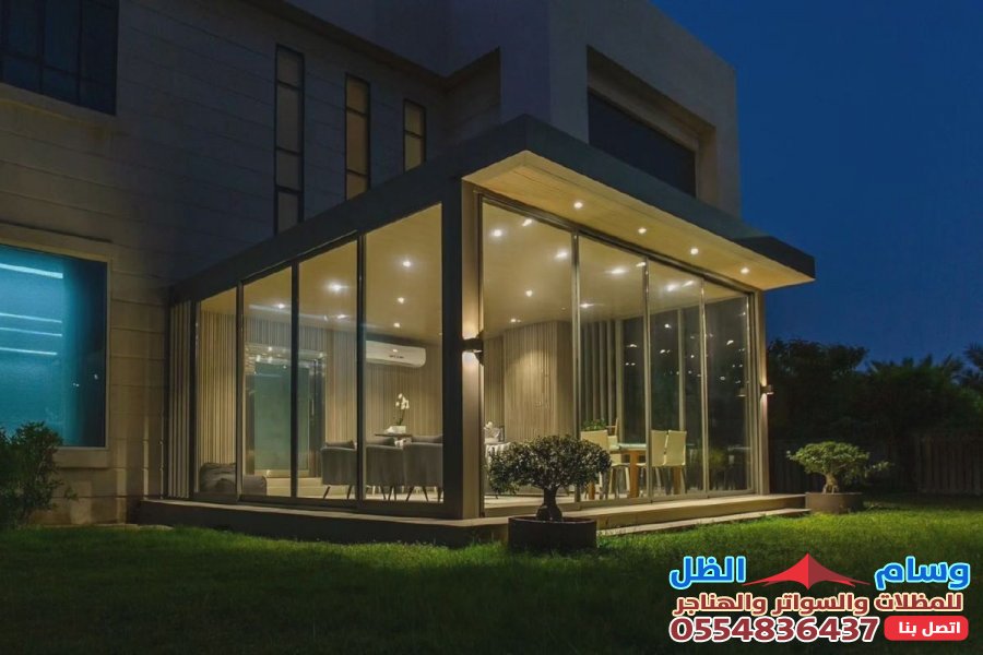 - التوجيه المعماري: يفضل توجيه الملحق الزجاجي بعيداً عن التعرض المباشر لأشعة الشمس الغربية الحارة، وإذا تعذر ذلك، يجب مضاعفة طبقات العزل والزجاج العاكس على هذا الجانب.
