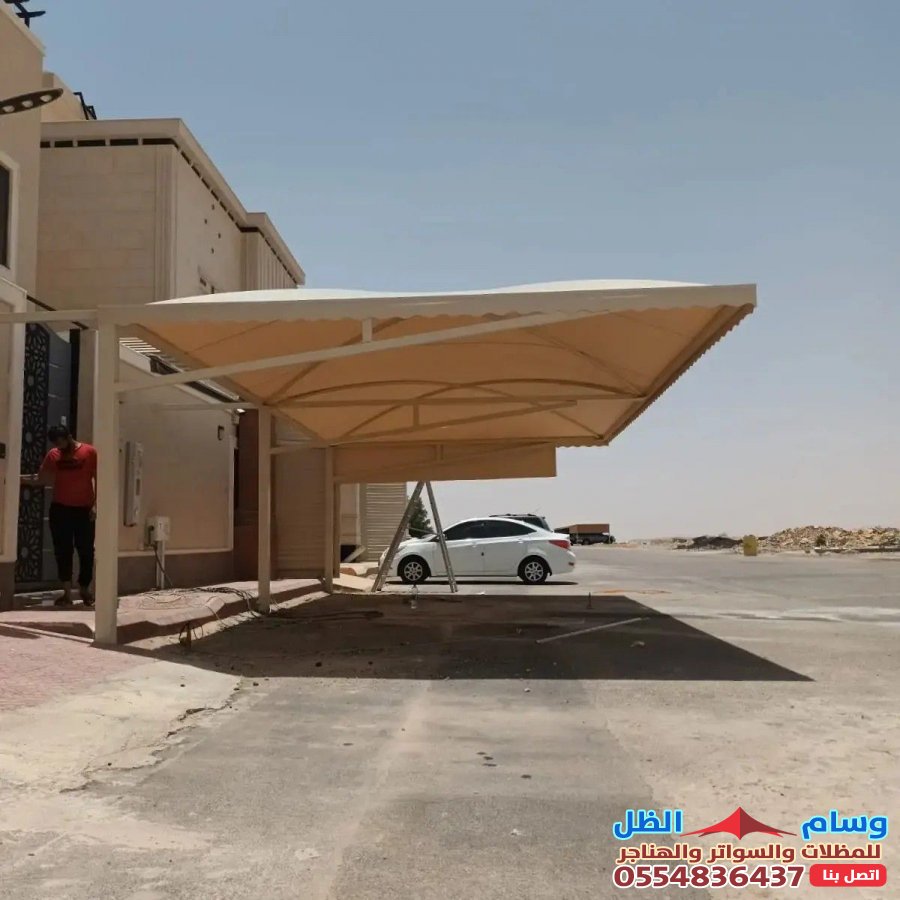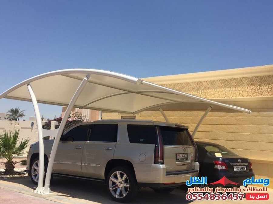 - مظلات الكابولي (Cantilever): هي التصميم الأمثل لمواقف السيارات، حيث يتم تثبيت الأعمدة في الخلف فقط، مما يترك مساحة الموقف خالية تماماً من العوائق الأمامية ويسهل المناورة.