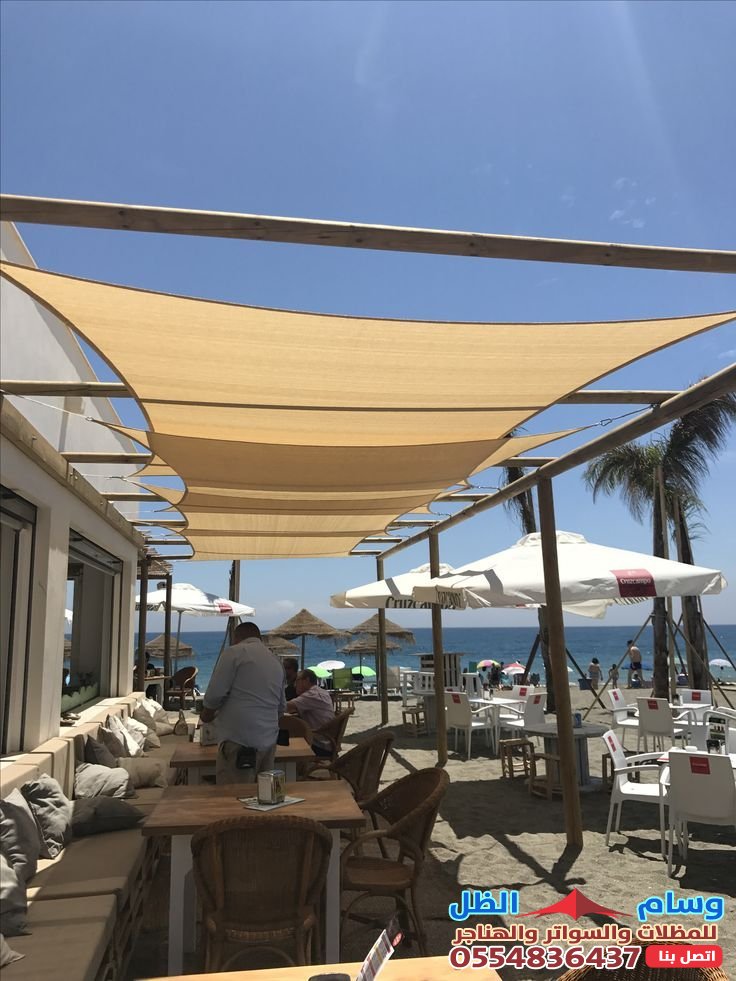 - المظلات الثابتة: تصميم دائم يوفر حماية مستمرة ويضيف لمسة جمالية للمكان.
