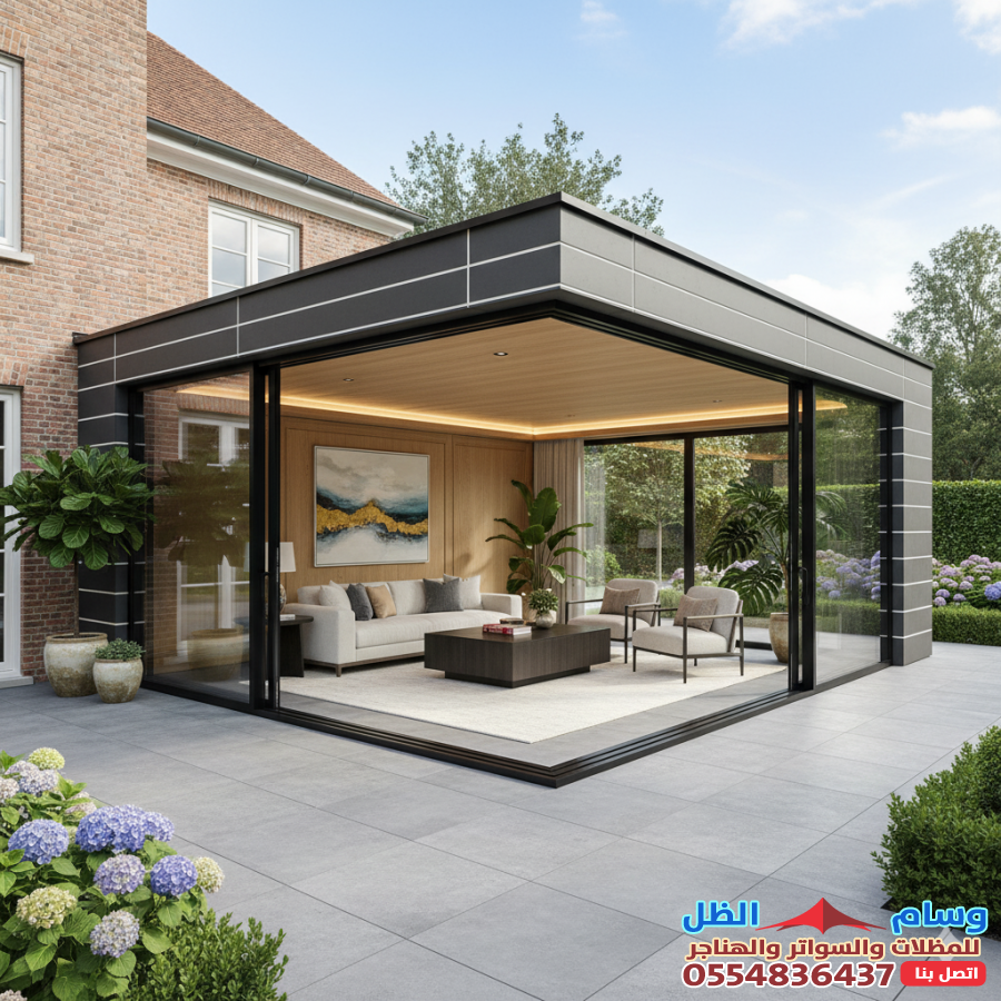 قاعة مناسبات منزلية: ملحق زجاجي لاستقبال الضيوف.