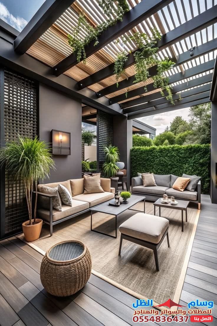 سواء كنت تبحث عن برجولة للاسترخاء، لتناول الطعام، أو لتزيين الحديقة المنزلية، توفر المؤسسة خبرة طويلة، مواد عالية الجودة، وتصاميم مبتكرة تجعل الحديقة مكانًا فاخرًا وعصريًا للعيش والاستمتاع. تواصل الآن مع مؤسسة وسام الظل للحصول على استشارة مجانية وتصميم برجولة مخصصة تناسب مساحتك وأسلوب منزلك.