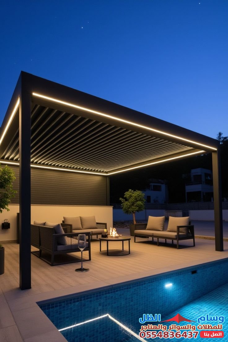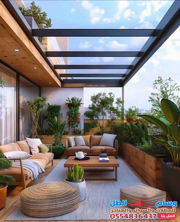 - التخطيط للتوسع: التفكير في إمكانية إضافة عناصر مستقبلية مثل سقف متحرك أو ستائر جانبية.